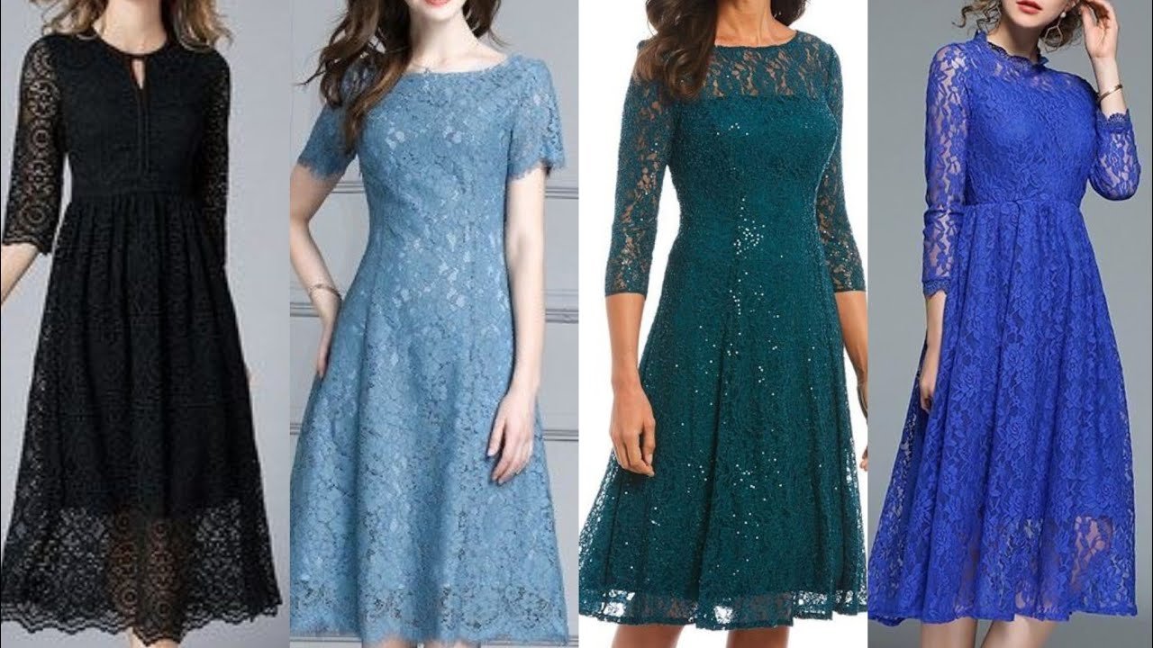 top48 fashionable and elegant soft floral lace skater dress design|summer evening party gown design